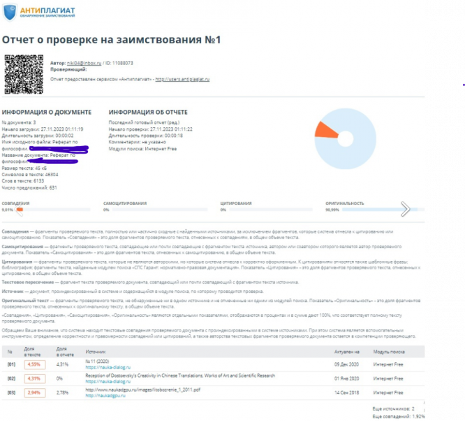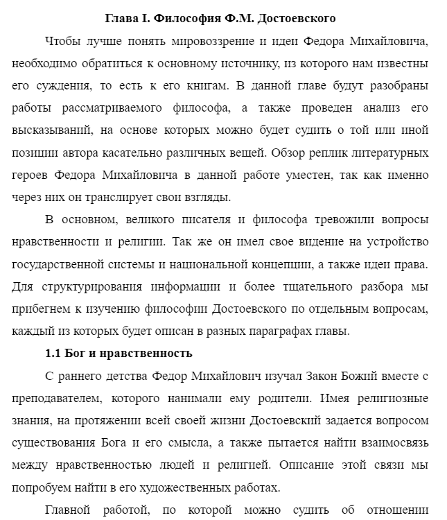Доклад на тему "Влияние философских идей Ф.М. Достоевского на философию ХХ века". Объем - 30 страниц с 3 рисунками в работе. Оригинальность текста 90%. Ниже представлено оглавление работы, пример одной из глав, а также скриншот проверки на антиплагиат.