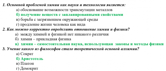 Основной проблемой химии как науки и технологии является: ​Как можно корректно определить отношение химии и физики? ​Учение какого из философов стало теоретической основой алхимии? ​Каковы временные рамки алхимического периода развития химии? ​Что являлось главной задачей алхимии? ​Кого из перечисленных учёных можно считать основоположником ятрохимии? ​Кто из перечисленных учёных является автором флогистонной теории горения? ​Что из перечисленного можно считать заслугой Лавуазье? ​Какой стехиометрический закон стал предметом дискуссии Ж.Л. Пруста и К.Л. Бертолле в начале XIX в.? ​Кто предложил систему основных химических понятий, на основе которой была осуществлена реформа атомно-молекулярной теории? Кто из перечисленных учёных первым указал на наличие взаимосвязи между атомной массой и свойствами элементов и их соединений? ​В каком году Д.И.