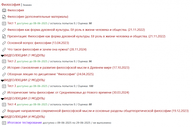 Представлены ответы на большинство вопросов из тестов 1-4 по предмету "Философия" для студентов Витте.