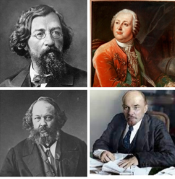 Определите, к какому философскому направлению (с точки зрения решения основного вопроса философии) принадлежат изображенные на коллажах русские философы. Заполните таблицу из выпадающего списка.