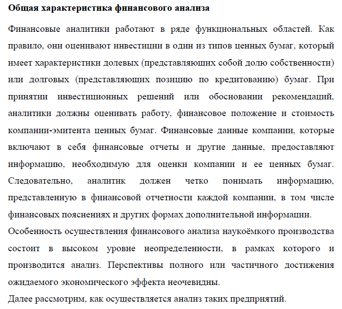 Реферат: Особенности финансового анализа наукоемких предприятий