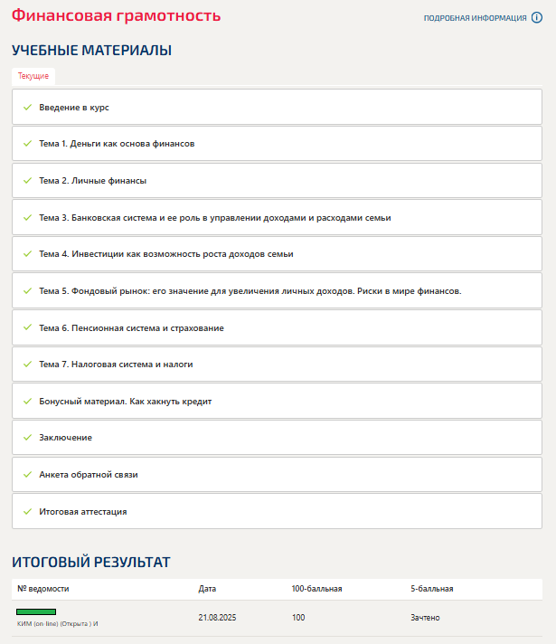 Ответы к зачёту Тесты 1-7, Итоговый: Финансовая грамотность (Темы 1-7)