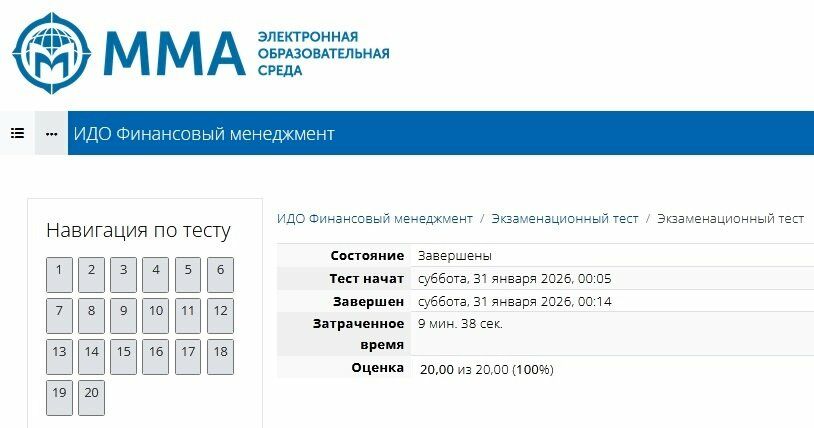 Сборник ответов к экзаменационному тесту Финансовый менеджмент ММА.