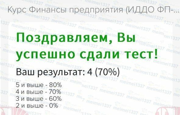 Для студентов ИДДО НИУ «МЭИ» по предмету Финансы предприятияКМ-4. Управление ценой и структурой капитала. Финансовые стратегии предприятия. Тестирование - 70%КМ-4. Управление ценой и структурой капитала. Финансовые стратегии предприятия. Тестирование - 70%