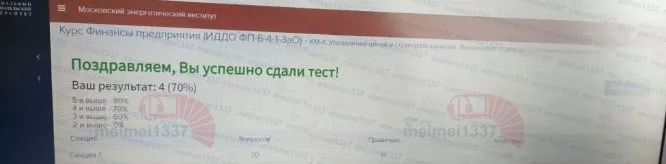 Для студентов ИДДО НИУ «МЭИ» по предмету Финансы предприятияКурс Финансы предприятия - КМ-4. Управление ценой и структурой капитала. Финансовые стратегии предприятия. ТестированиеКурс Финансы предприятия - КМ-4. Управление ценой и структурой капитала. Финансовые стратегии предприятия. Тестирование