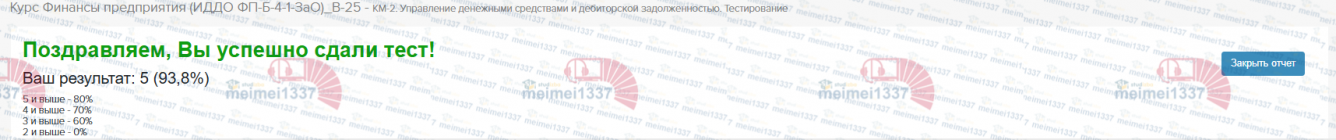 Курс Финансы предприятия - КМ-2. Управление денежными средствами и дебиторской задолженностью. Тестирование