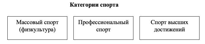 Расположите описания трех категорий спорта согласно схеме (см. рисунок ниже) в порядке слева направо: