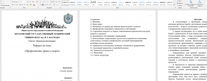 Реферат: Реферат по физре «Профилактика травм в спорте» (word) (2020г)