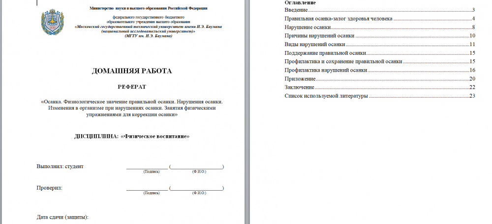 Реферат на тему: "Осанка. Физиологическое значение правильной осанки. Нарушения осанки. Изменения в организме при нарушениях осанки. Занятия физическими упражнениями для коррекции осанки."