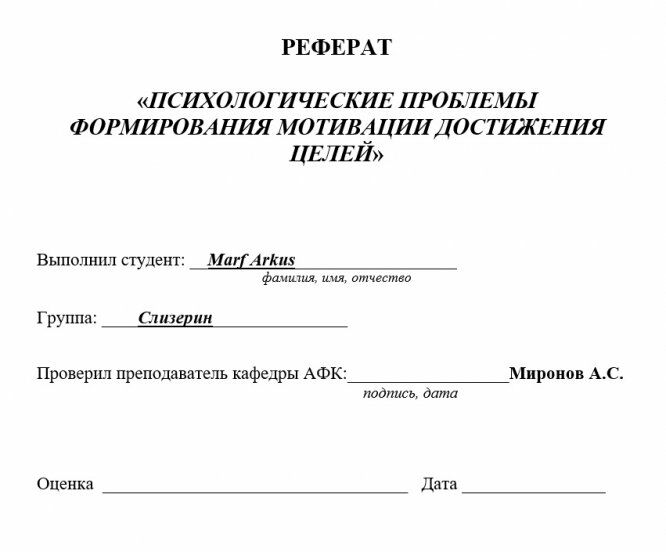 АФК: Реферат (без презентации, но её можно сделать на основании реферата). Тема: " Психологические проблемы формирования мотивации достижения целей " (Зачтено)