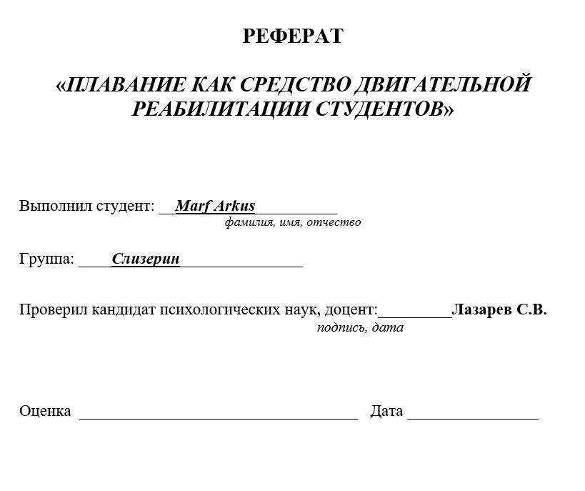 АФК: Реферат + презентация. Тема: " Плавание как средство двигательной реабилитации студентов " (Зачтено на максимум: 5/5)