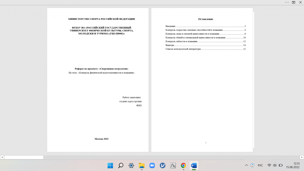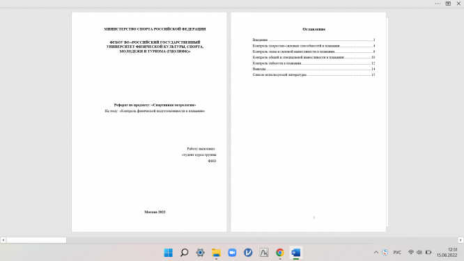 Реферат: Реферат на тему "Контроль физической подготовленности в плавании"