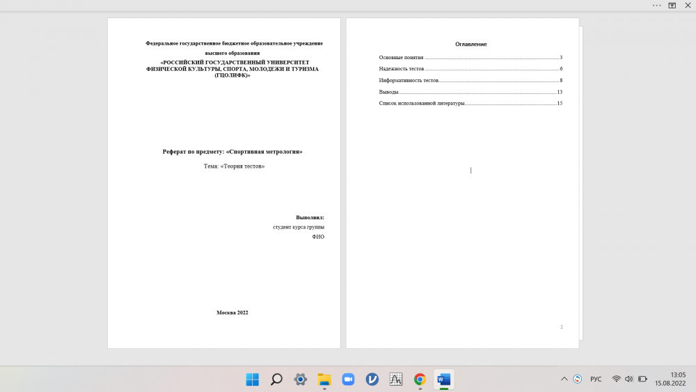 Для студентов РГУФКСМиТ по предмету Физическая культураРеферат на тему «Теория тестов» Реферат на тему «Теория тестов»