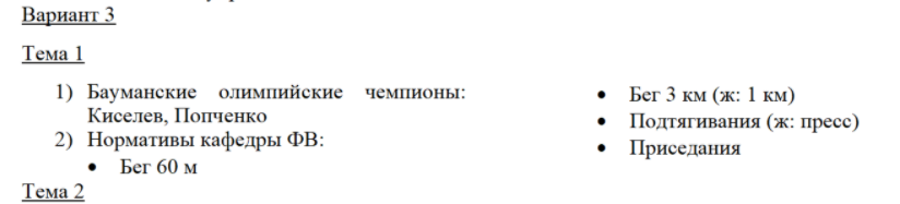 Для студентов МГТУ им. Н.Э.Баумана по предмету Физическая культураРубежный контроль 1, 2, 3 вариантыРубежный контроль 1, 2, 3 варианты