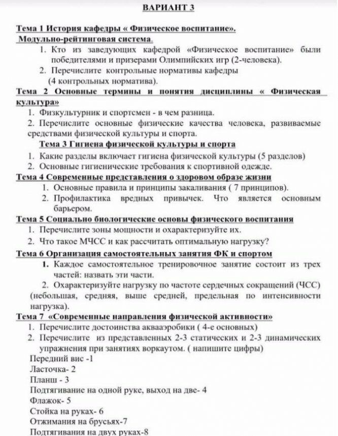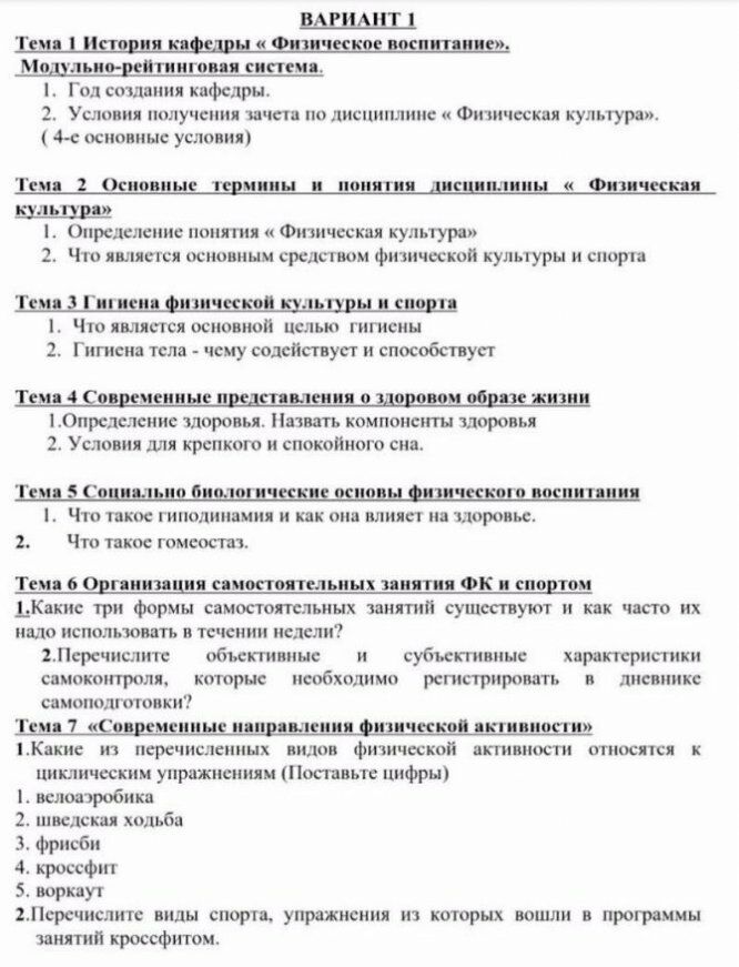Для студентов МГТУ им. Н.Э.Баумана по предмету Физическая культураПримерные варианты рубежного контроляПримерные варианты рубежного контроля