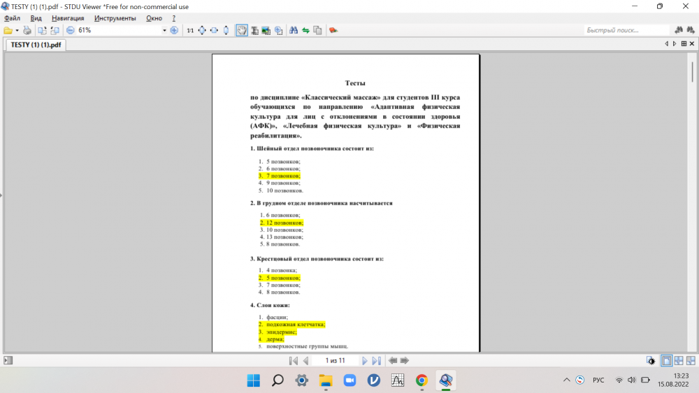 Ответы к экзамену: Тест по массажу