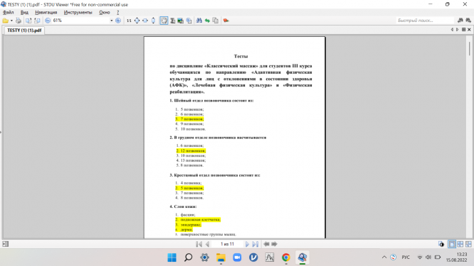 Для студентов РГУФКСМиТ по предмету Физическая культураТест по массажуТест по массажу