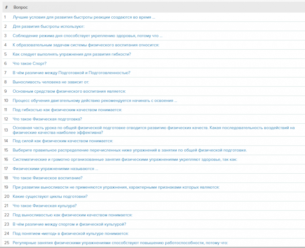 Ответы к зачёту: Физическая культура и спорт. Часть 2/5 84%
