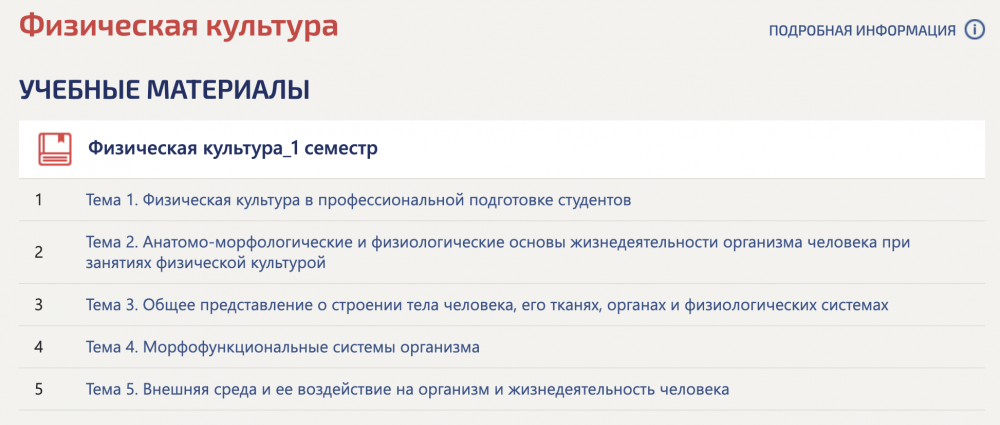 Темы теста по физической культуре за первый семестр