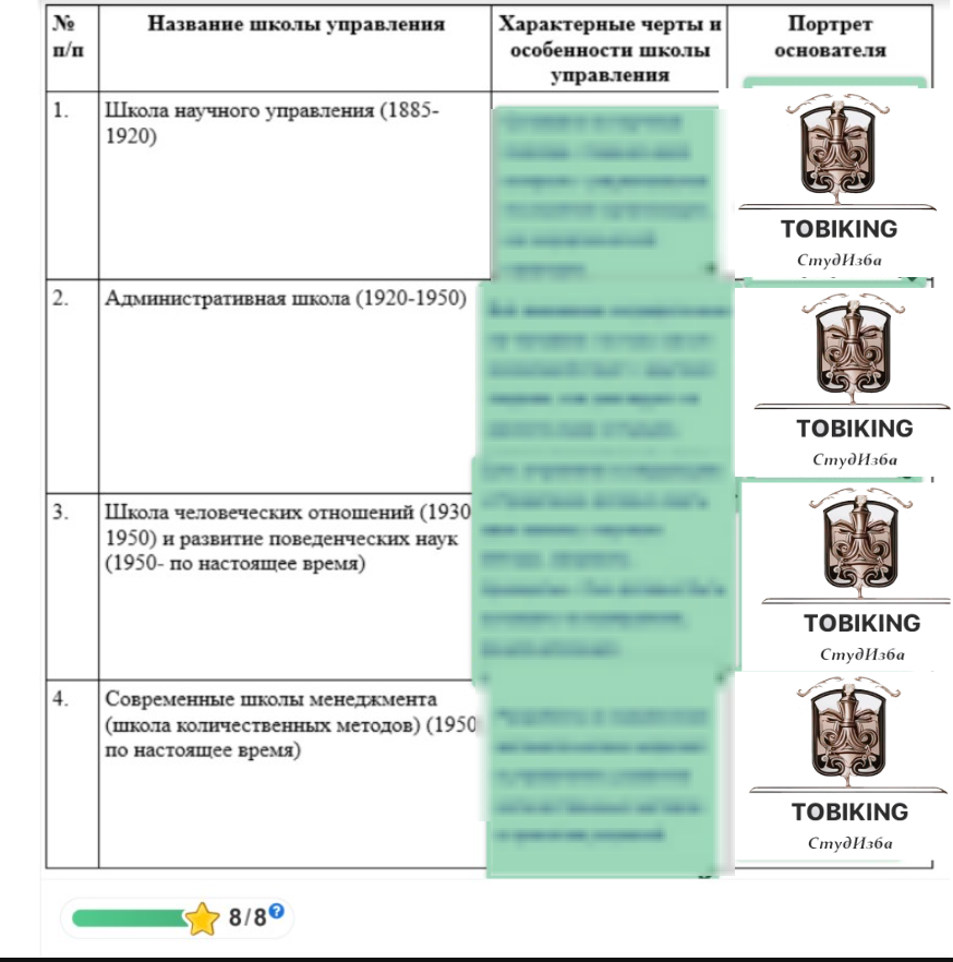 Как самостоятельная наука, «менеджмент» зародился на рубеже XIX-XX вв. Именно в этот период появились первые работы, посвященные управлению хозяйственной деятельности. Заполните третий и четвертый столбцы таблицы «Основные этапы развития менеджмента», для этого установите соответствие между школами управления, характерными чертами и портретом её основателя. Используйте левую кнопку компьютерной мыши для перемещения портретов и блоков с характерными чертами и особенностями управленческих школ. № п/пНазвание школы управленияХарактерные черты особенности школы управленияПортрет основателя 1Школа научного управления (1885-1920) 2Административная школа (1920-1950) 3Школа человечески отношений (1930-1950) и развитие поведенческих наук (1950-по настоящее время) 4Современные школы менеджмента (школа количественных методов) (1950-по настоящее время)   .