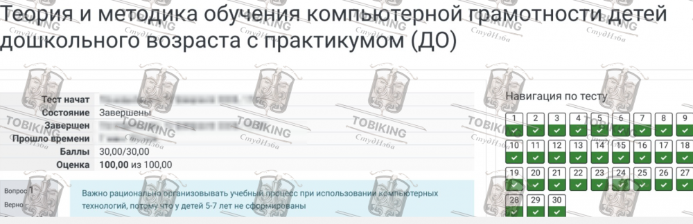 Ответы на все тесты к дисциплине Теория и методика обучения компьютерной грамотности детей