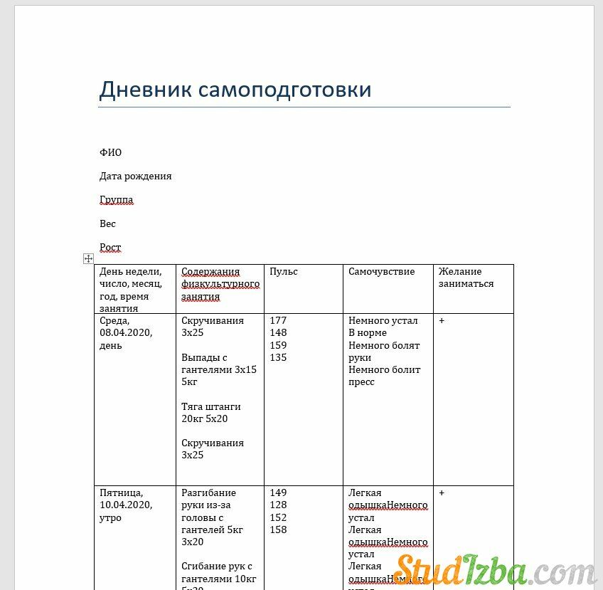 Для студентов МГТУ им. Н.Э.Баумана по предмету Физическая культураХорошо оформленный дневник самоподготовки на весь семестрХорошо оформленный дневник самоподготовки на весь семестр