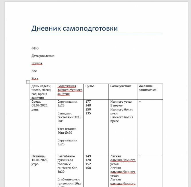 Для студентов МГТУ им. Н.Э.Баумана по предмету Физическая культураДневник самоподготовки на весь семестрДневник самоподготовки на весь семестр