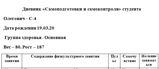 Для студентов МГТУ им. Н.Э.Баумана по предмету Физическая культураДневник самоподготовкиДневник самоподготовки
