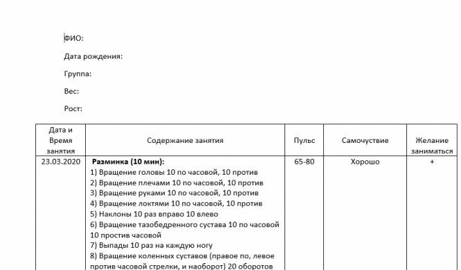 Для студентов МГТУ им. Н.Э.Баумана по предмету Физическая культураДневник самоподготовкиДневник самоподготовки