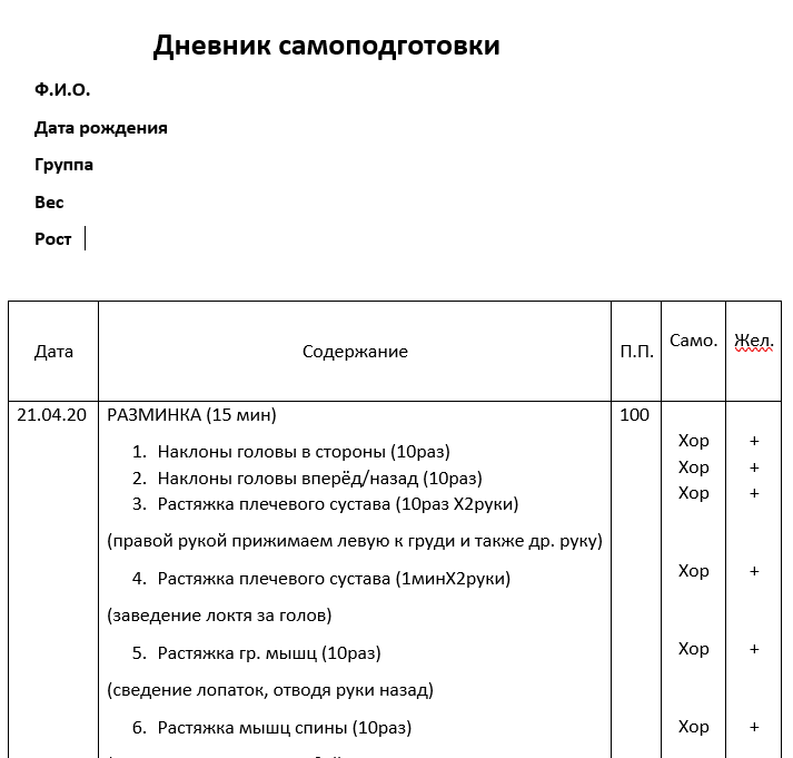 Для студентов МГТУ им. Н.Э.Баумана по предмету Физическая культураДневник самоподготовкиДневник самоподготовки