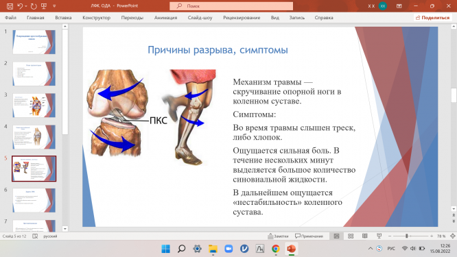 Для студентов РГУФКСМиТ по предмету Физическая культураПрезентация на тему "Повреждение крестообразных связок"Презентация на тему "Повреждение крестообразных связок"