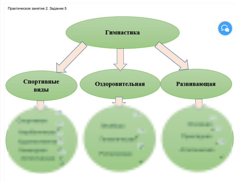 На представленной схеме отображена классификация видов гимнастики. Выберите и переместите все виды, которые относятся к каждому разделу..