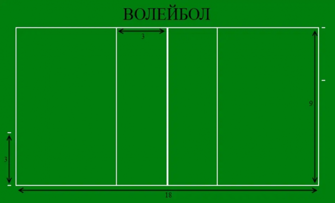 Перед вами волейбольная площадка. Укажите расположение игровых зон на ней. Для этого переместите цифры в определенное место.
