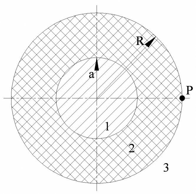 Дан металлический шар радиуса а. Он окружён оболочкой из диэлектрика, внешняя поверхность которой сфера радиуса R, всё остальное — вакуум. Относительная диэлектрическая проницаемость ε, заряд шара q. Построить зависимости D(x), E(x), U(x) и проанализировать их особенности в областях 1, 2, 3 и в пограничной точке Р. Построить картины линий поля вектора Е и D в трёх областях. Построить зависимость плотности распределения энергий функций для трёх областей. Изменить радиус R так, чтобы количество энергии, заключённой во всём слое диэлектрика, и количество энергии, заключённой в окружности пространства, были одинаковы.