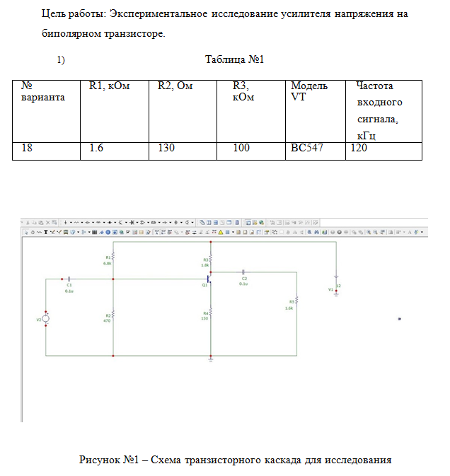 Лабораторная работа 4: Усилитель напряжения на биполярном транзисторе