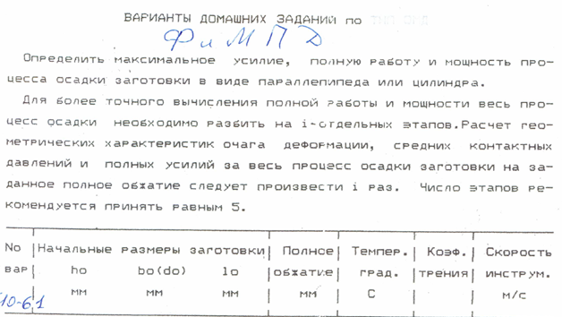 ДЗ: Решение задачи осадки цилиндрической заготовки инженерным методом вариант 4