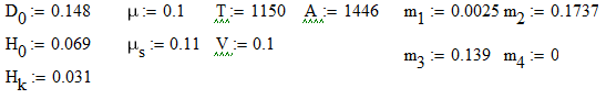 - Полная программа Mathcad, оформленная для следующих значений:
