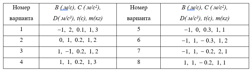 Тело массой т движется поступательно под действием некоторой силы F согласно уравнению x = 3A + 2Bt + Ct2 - Dt3. Найти мощность, развиваемую силой F в момент времени t. Ответ записать в Вт с точностью до сотых.