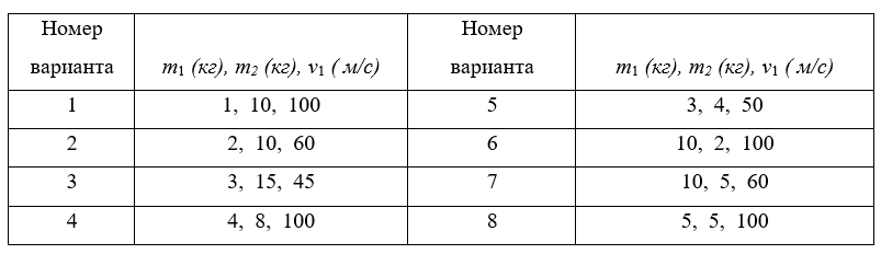 Шар массой m1, движущийся со скоростью v1 , ударяет неподвижный шар массой m2 . Какова будет скорость u2 второго шара после удара, если удар был прямой и абсолютно упругий? Ответ записать в м/с с точностью до целых.