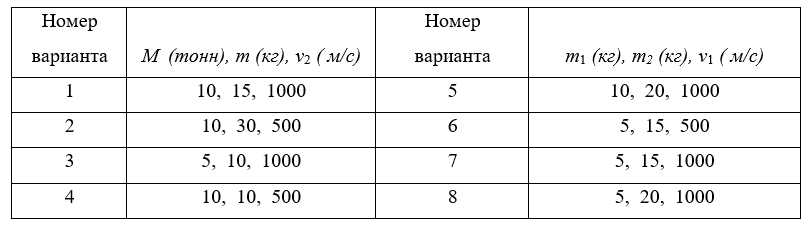 На платформе установлена гаубица. Масса платформы с гаубицей M. Гаубица стреляет вверх под углом j = 60° к горизонту. С какой скоростью v покатится платформа вследствие отдачи, если масса снаряда m и он вылетает со скоростью v2 ? Ответ записать в м/с с точностью до сотых.