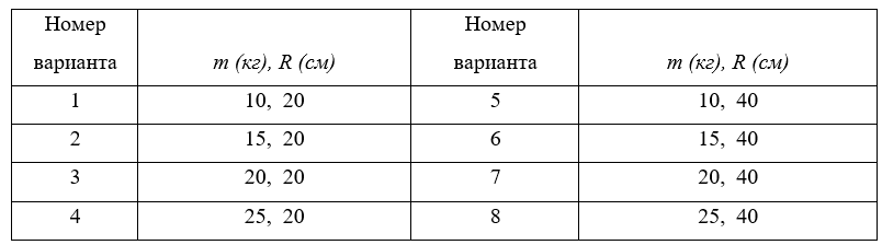Диск массой m и радиусом R вращается во­круг оси симметрии, перпендикулярной его плоскости. Уравнение вращения диска имеет вид j = 3A + Bt2 + Ct3, где В = 2 рад/с2, С = 1 рад/с3. Определить момент сил М в момент времени t = 1 с. Ответ записать в Н·м с точностью до целых.