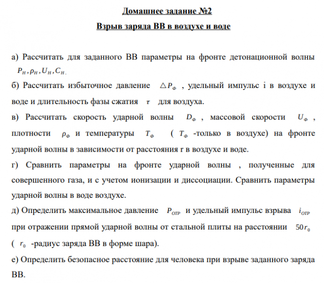 ДЗ 1: Взрыв заряда ВВ в воздухе и воде вариант 7