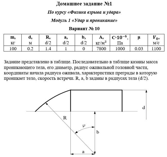 ДЗ 1: Удар и проникание вариант 10