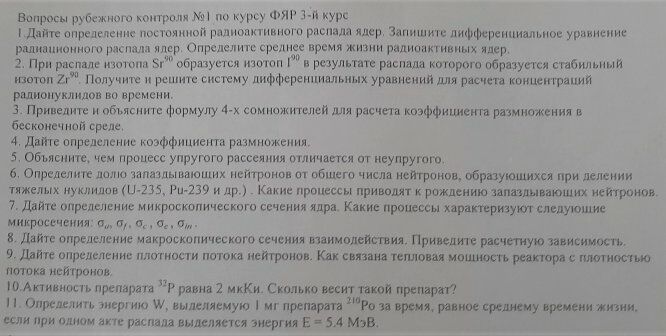 Ответы к контрольной работе Рк: РК по физике ядерных реакторов (ФЯР) АнтиСтолотнюк
