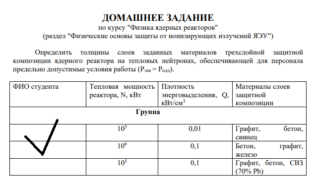 ДЗ 1: Расчёт трёхслойной защиты ядерного реактора (Бетон, графит, железо) вариант 2