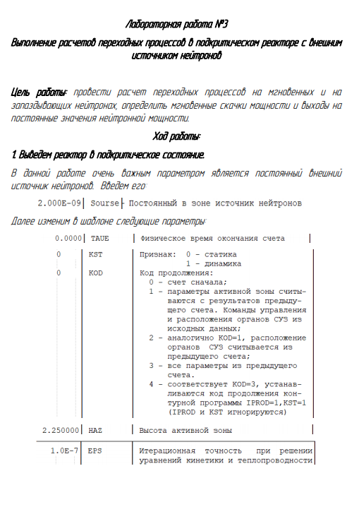 Лабораторная работа: Лабораторная работа - Кинетика ядерных реакторов (Лаб 1+2+3+4)