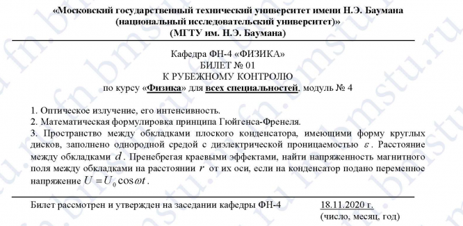 Для студентов МГТУ им. Н.Э.Баумана по предмету ФизикаРК2 билеты+ответы (2020)РК2 билеты+ответы (2020)