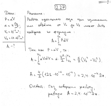 Расчетно-графические работы по физике, 1 семестр, вариант №4. Раздел: молекулярная физика. Данные работы требуются обязательно для допуска к экзамену или зачету по физике. Вот к примеру задача 2.27 из раздела "Молекулярная физика":