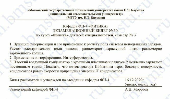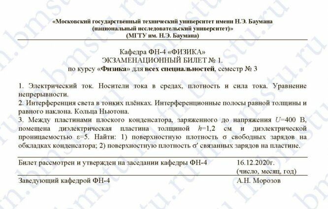 Для студентов МГТУ им. Н.Э.Баумана по предмету ФизикаЭкзаменационные билеты - РешениеЭкзаменационные билеты - Решение