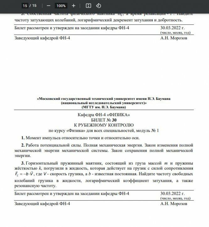 Для студентов МГТУ им. Н.Э.Баумана по предмету ФизикаМеханика, колебанияМеханика, колебания
